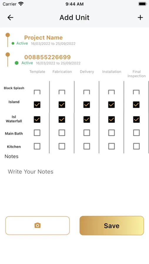 This application allows management of projects, units, and each unit's processes like templates, Fabrication, delivery, installation, and final inspection.
