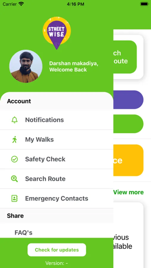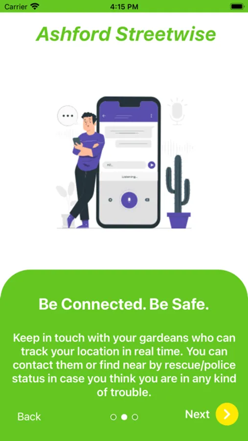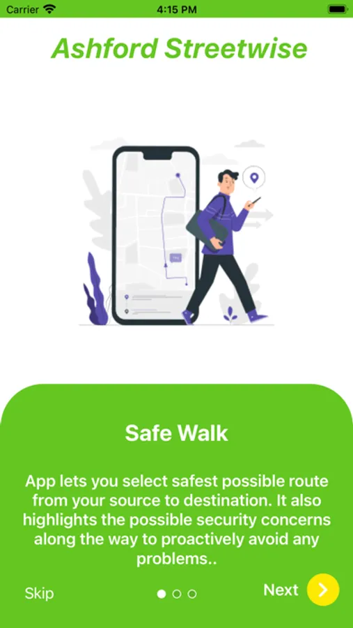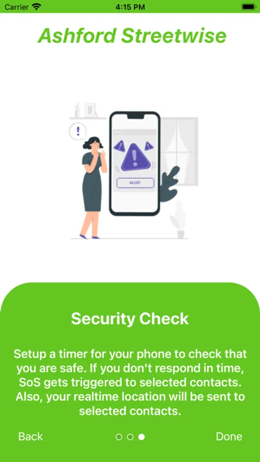 The Ashford Streetwise App’s other safety features are: