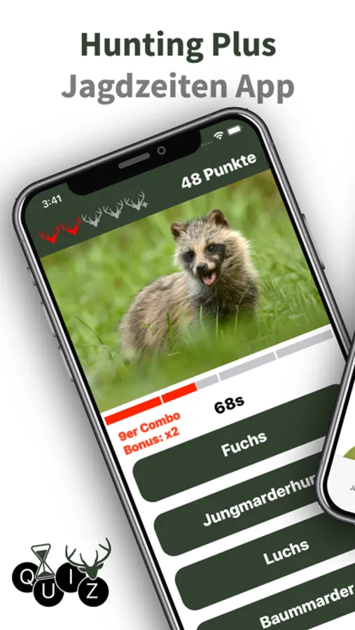 Du meinst, du kennst alle Wildtiere? Im rasanten Zeit-Quiz fordern wir dich heraus, die Bestpunktzahl der anderen Online-Spieler zu knacken. Hier wird nicht nur Wissen, sondern auch Schnelligkeit verlangt. Die Zeit hängt dir im Nacken und nur durch richtige Antworten bekommst du Bonussekunden und Punkte. Aber sei vorsichtig, die Anzahl deiner Leben ist begrenzt. Das Zeit-Quiz ist in mehrere Phasen aufgebaut und jede Phase erhöht den Schwierigkeitsgrad. Wir sind gespannt, ob ein wahrer Jäger in dir steckt. Wir sehen uns im Game Center in der Bestenliste!