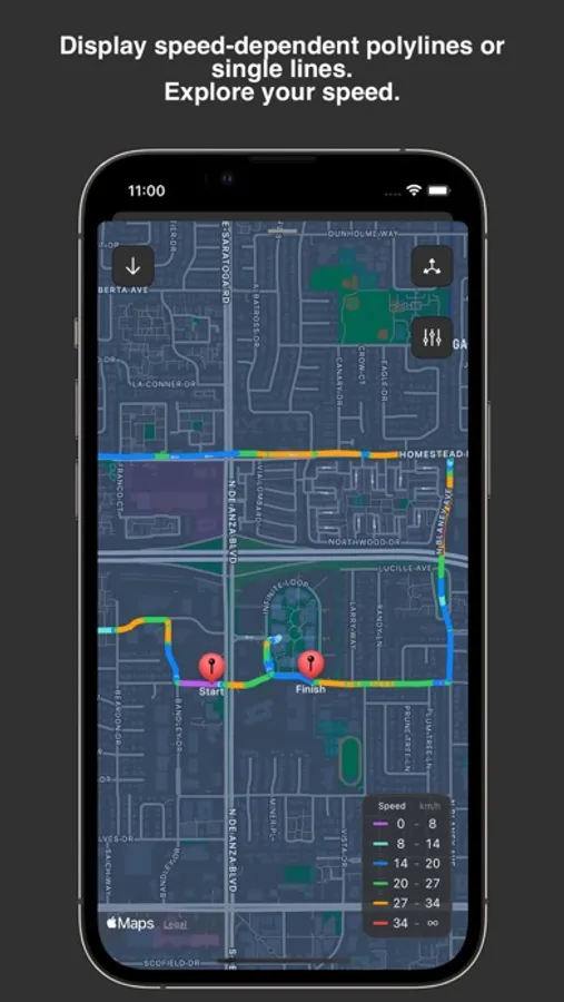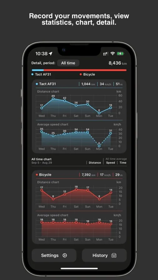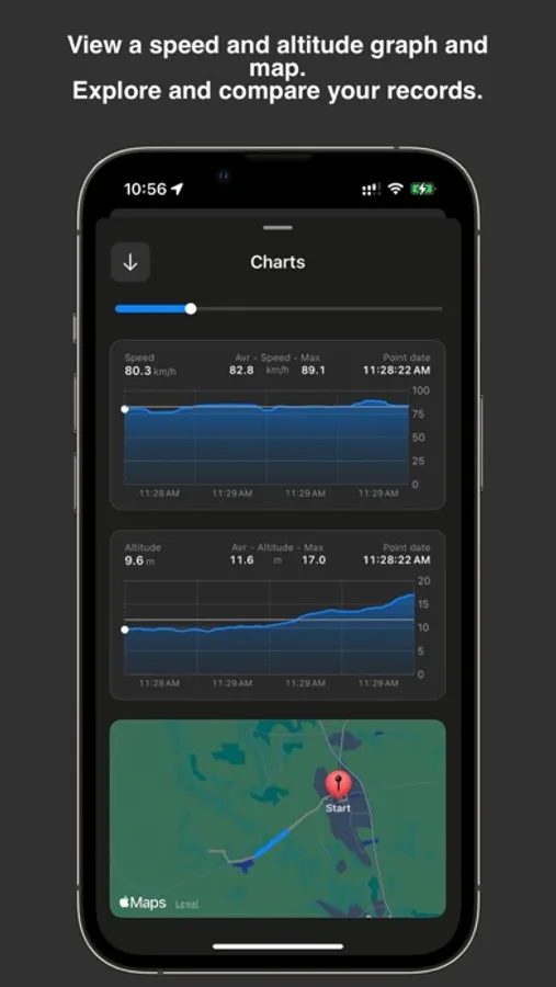 - In the saved travel history data, speed and altitude graphs for the whole recorded route are used, as well as the graph interval is displayed on the map.