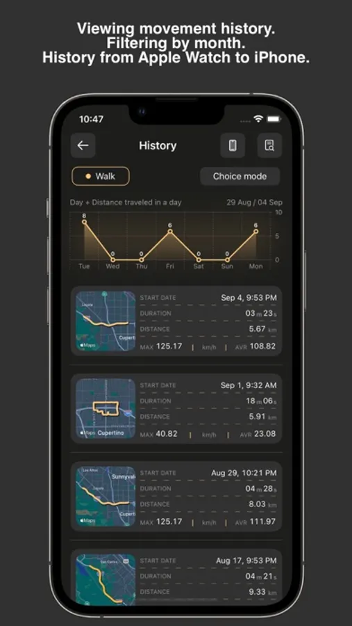 - Synchronization of records from Apple Watch to iPhone and complete movement records
