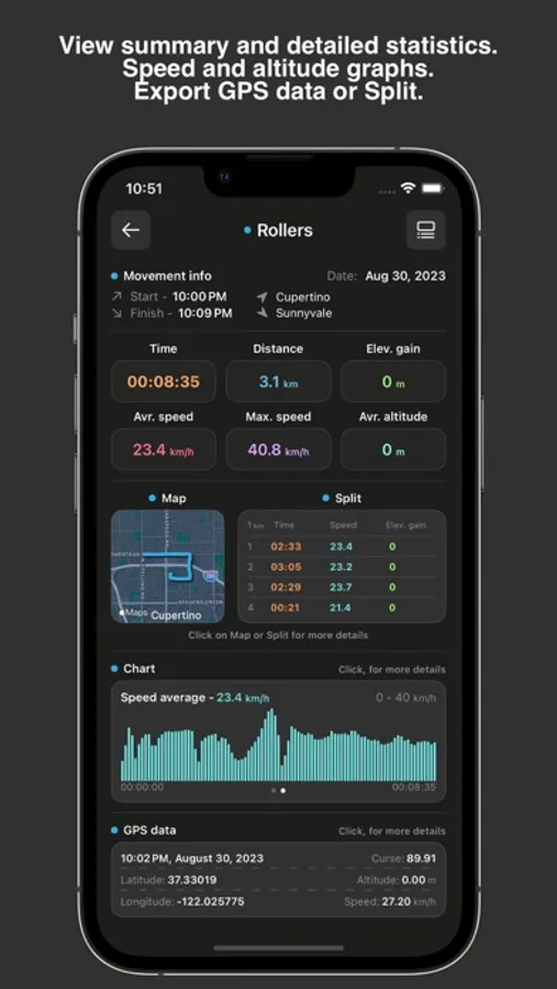 - Interactive graphs of speed and altitude, map to the recording screen, yes easy viewing of statistics during recording.