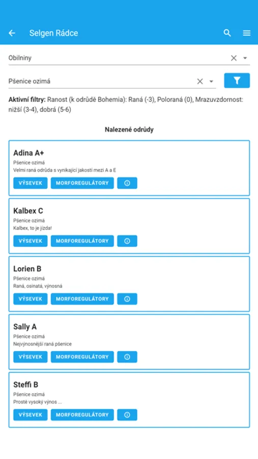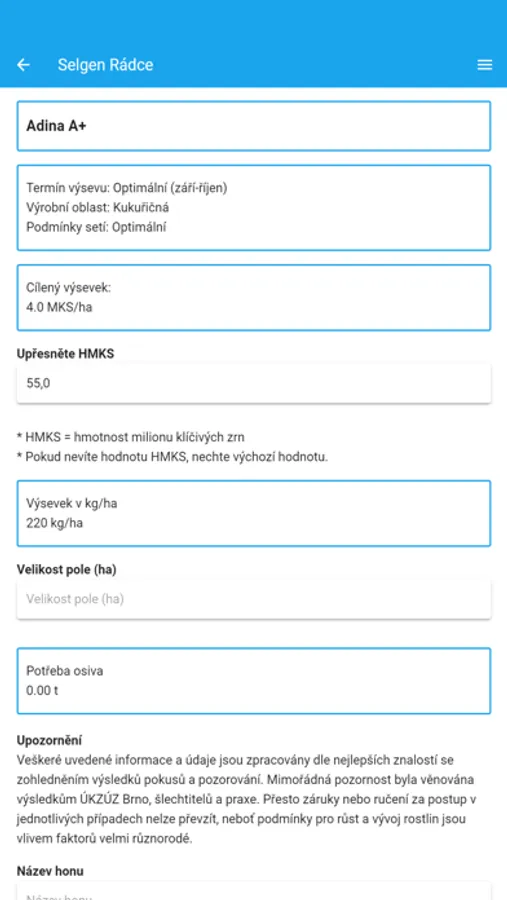 Selgen Rádce - aplikace pro počítání výsevku a aplikace morforegulátorů