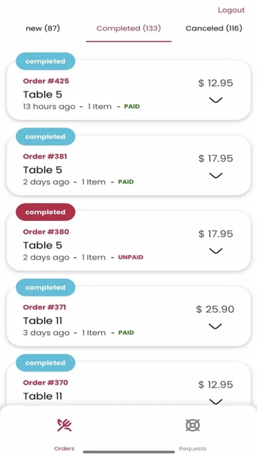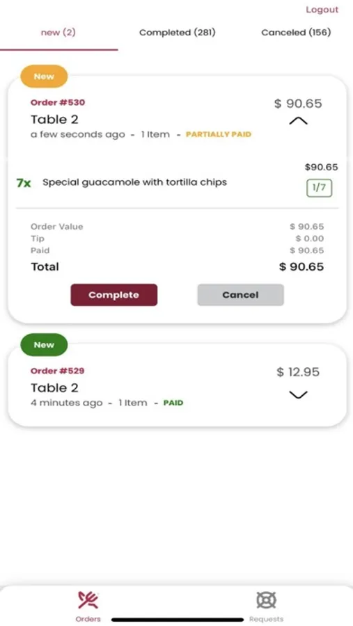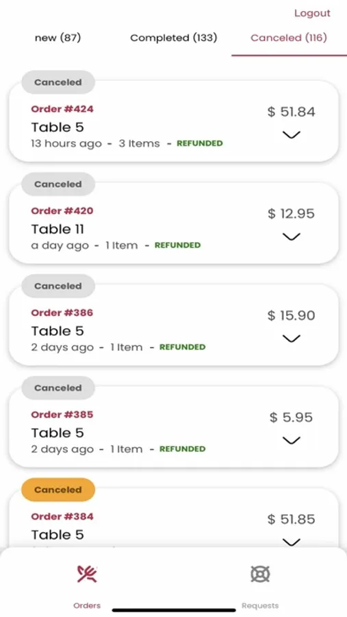 View all waiter requests in real time as they arrive and dismiss them with ease once they are addressed.