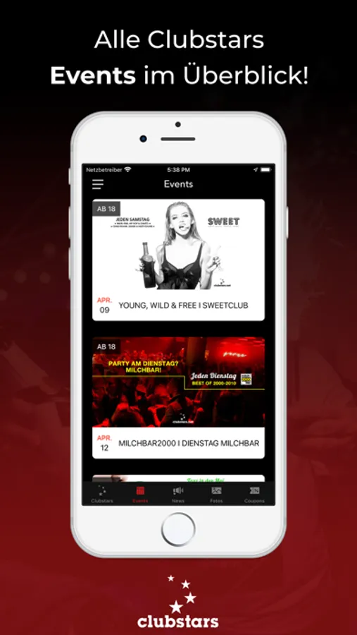Lade dir unsere Clubstars App und werde kostenlos Mitglied bei Clubstars.net
