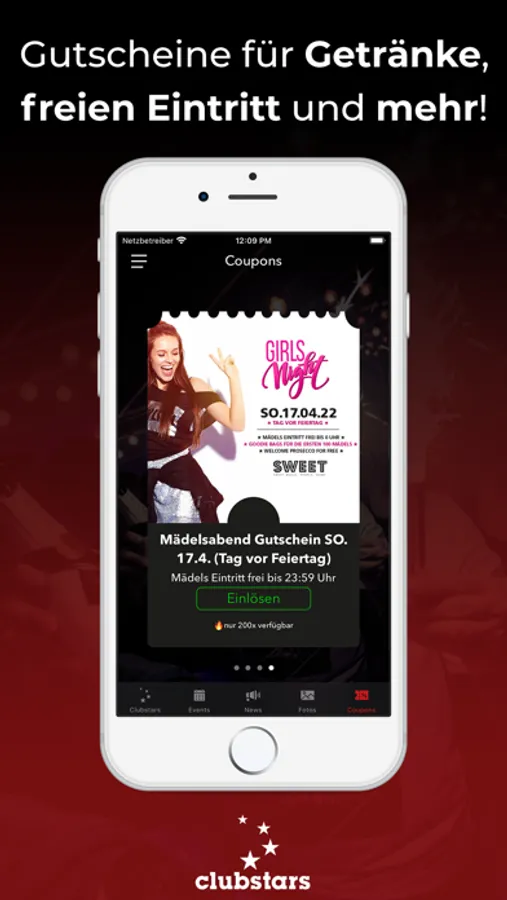 Du erfährst schneller & exklusiv wann/wo die nächste Party steigt und profitierst dabei noch von fetten Aktionen. Zum Event sparst du mit unseren Gutscheinen bares Geld. Damit du dich am Tag danach auch an den geilen Abend erinnern kannst, stellen wir auch Party-Pics in der App bereit.