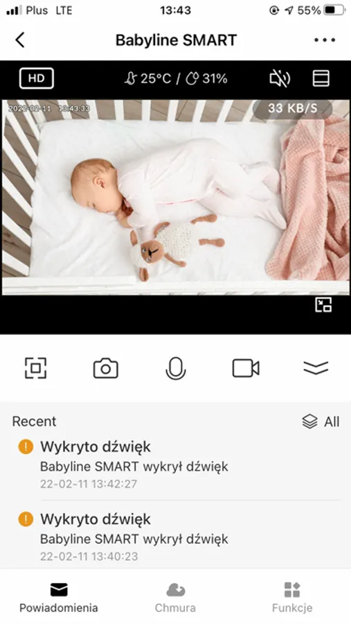 • Otrzymujesz dźwiękowe i wibracyjne powiadomienia, kiedy maleństwo zaczyna się przemieszczać lub płakać.