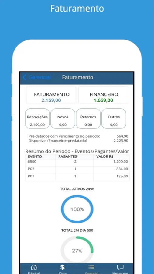 - Consulta de Faturamento e dados estatísticos do seu negócio por período;