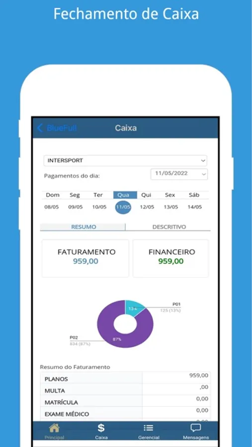 - Fechamento de caixa;
