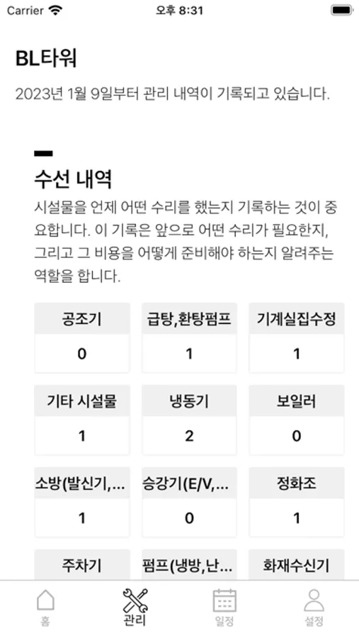더불어, 이 앱은 시설물의 수리 기록을 관리하는 기능을 제공합니다. 사용자는 언제 어떤 수리 작업이 이루어졌는지, 그리고 그에 따른 비용이 어떠한지에 대한 정보를 손쉽게 파악할 수 있습니다. 이 기록은 사용자가 미래의 수리 필요성과 비용을 예측하고 준비하는 데 도움이 됩니다.