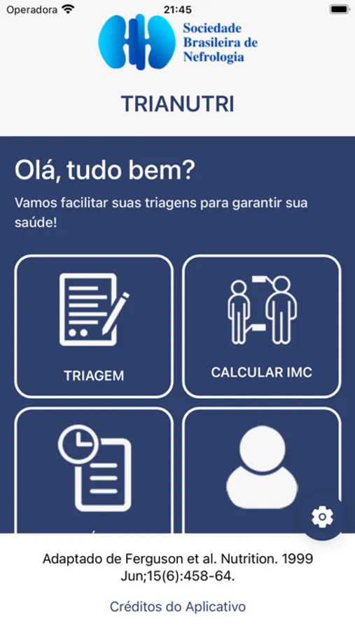 O TRIANUTRI é um aplicativo gratuito, desenvolvido pelo Comitê de Nutrição da Sociedade Brasileira de Nefrologia. É um instrumento prático, baseado em questionário cientificamente validado. O objetivo é identificar RISCO DE DESNUTRIÇÃO de pessoas com doença renal crônica.