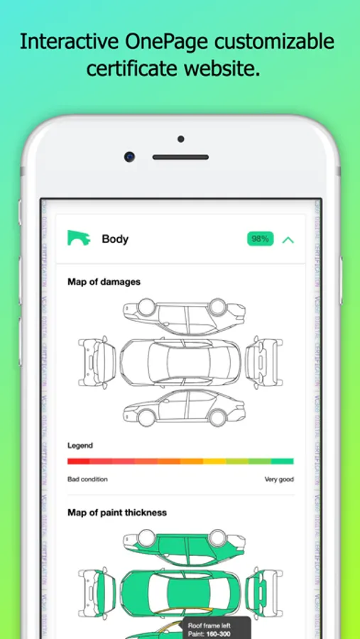 Discover the 21st century car inspection system - an application that scans the condition of vehicles and transfers detailed information to the digital world. Certification confirming the authenticity of information builds the credibility of dealers and helps customers make a purchase decision.