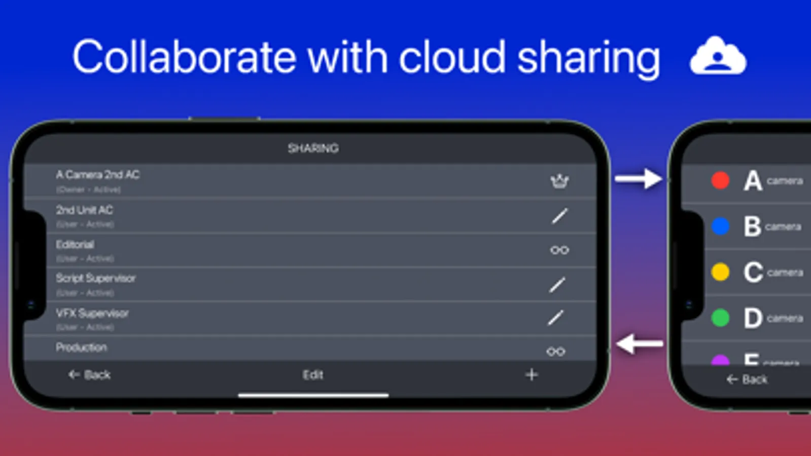 SHARE - Share a project with 2nd or other units, production, edit, post, VFX, script supervisors or any crew. They can then access the project data and generate reports directly, saving precious time on queries. A department needs to check something they can! Data added by participants (with write permission) magically syncs to everyone in the share group. Set individual read or write permissions to prevent editing and control the level of access. Remove participants or stop sharing any time and the project will disappear from their device. No internet, no problem, data added offline will sync when you are next connected.