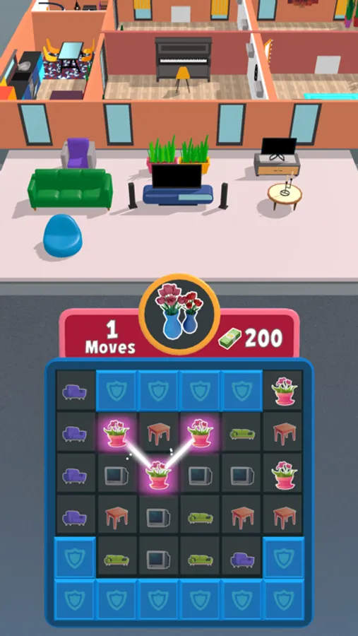 Create furniture by matching their icons. Design houses with the furniture that you created!