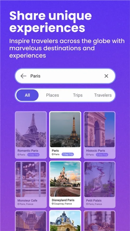 Trips Galleries - Easily create photo galleries of your trips and share them with the world. It's a great way to showcase your travel experiences and inspire others to explore new destinations. Share your galleries with your friends and family on social media, and get inspired by the galleries shared by other travelers.