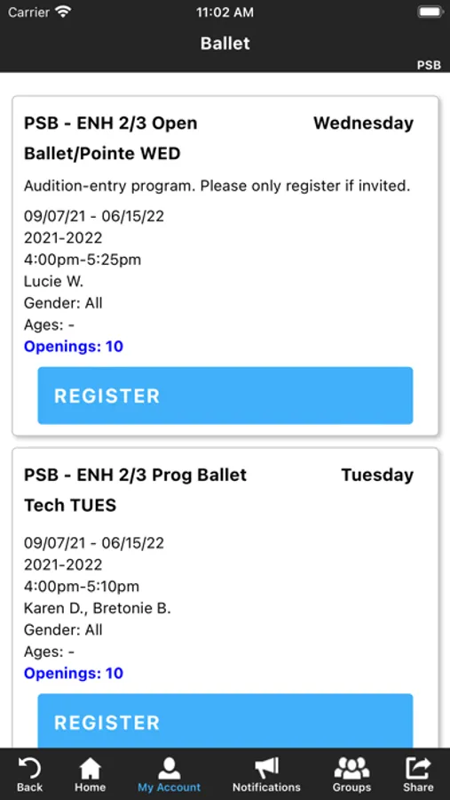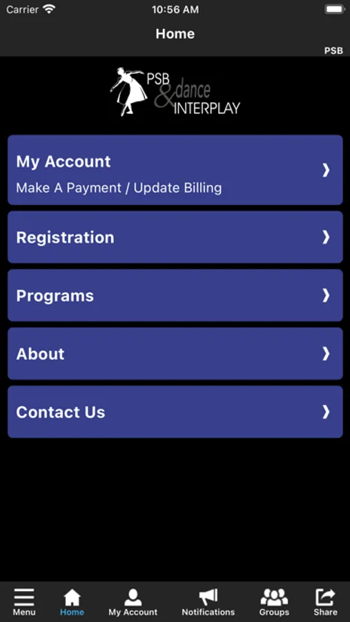 The PSB & Interplay Dance app allows you to manage your account with ease, register for classes, private lessons, birthday parties and special events. You'll also receive important notifications about class changes, closings, registration openings, special announcements, and upcoming events.