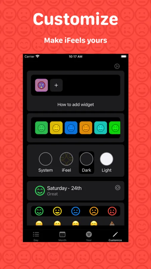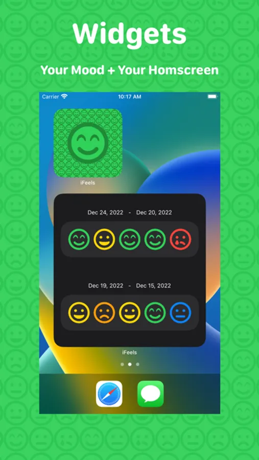 iFeels also features the ability to choose between numerous colorful icons, custom mood colors, mood images, text color, light and dark themes, and even a subset of days of the week for reflection. The customization options in iFeels are endless, and you can truly make the app yours. Outside of the app, you’ll also find several different customizable widget options that you can add to your Home Screen.