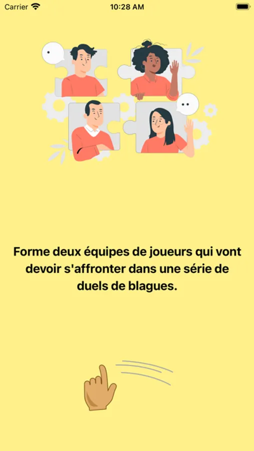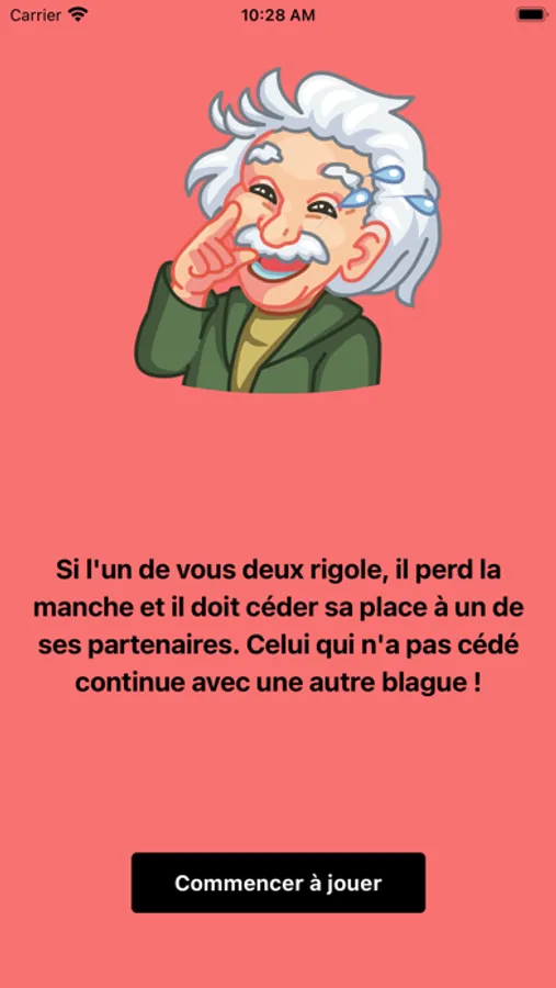 - Chaque équipe désigne ensuite un joueur qui va devoir lire une blague à un joueur de l'équipe adverse avec pour objectif de faire rire l'autre sans rire soi-même à la blague en question.