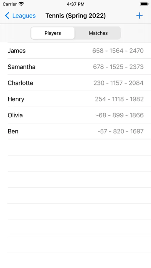 The rating system used by Libra is based on TrueSkill, which models the skills of players as a Gaussian. The ratings in the app are displayed using three numbers, which represent the lower bound, mean, and upper bound of the Gaussian, where the bounds are set three standard deviations away from the mean.