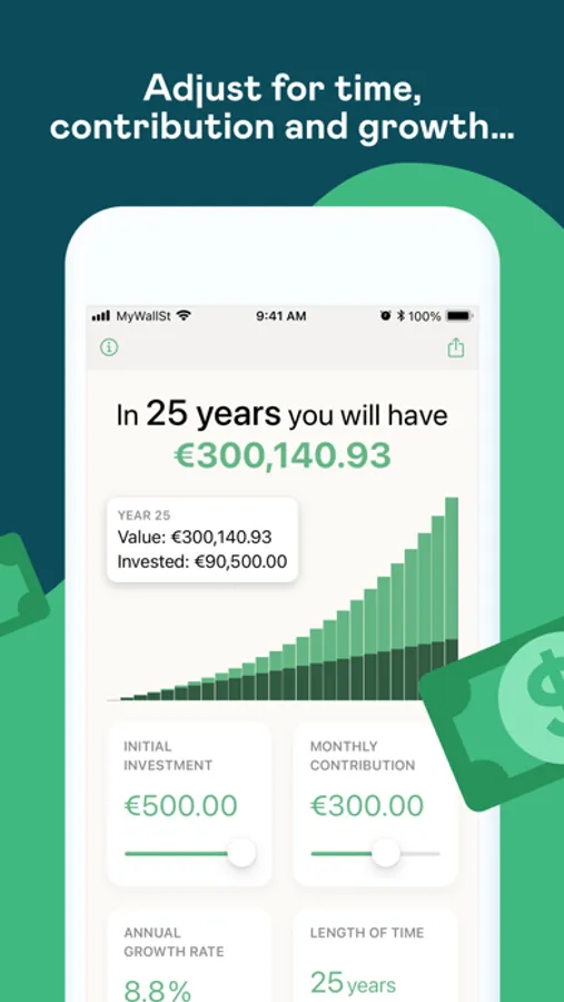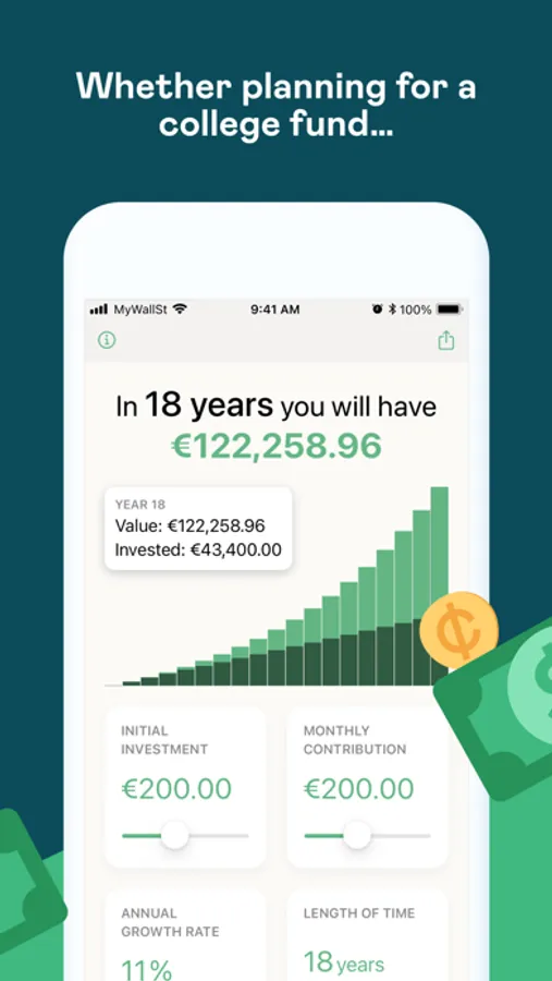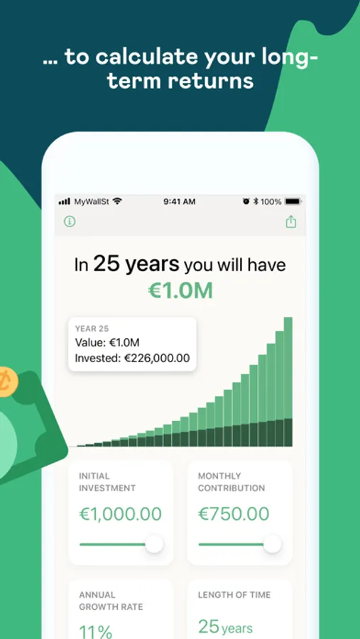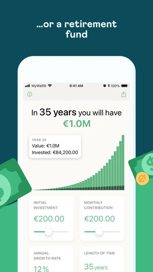 Whether you’re dreaming of buying that perfect house, retiring early or becoming financially independent, Compound shows you exactly how much you need to invest, and for how long, to achieve your goal. All you have to do is start investing as it's never too late to start earning some real money!