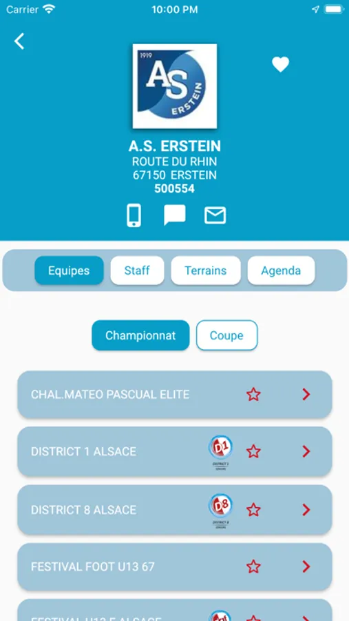 Une application unique pour suivre au plus près l'actualité du football du District d'Alsace de Football, fiche club, équipes, staff, terrains et agenda !