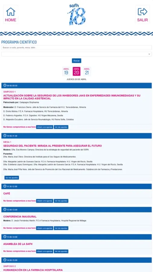 Esta aplicación permite consultar el Programa Científico del 18 Congreso de la SAFH. El congresista podrá organizar su agenda para asistir a las sesiones y aprovechar así al máximo su tiempo.