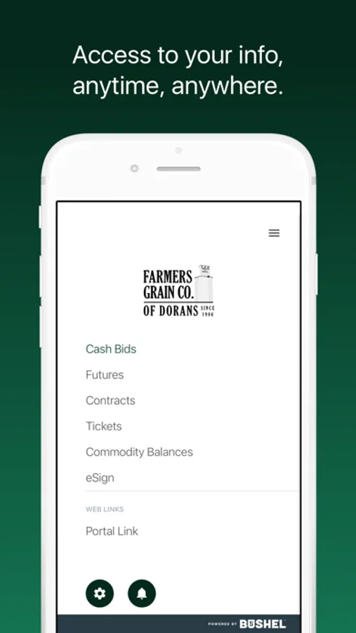 The Farmers Grain Co. of Dorans app is free, secure, and developed by the industry-leading Bushel platform.