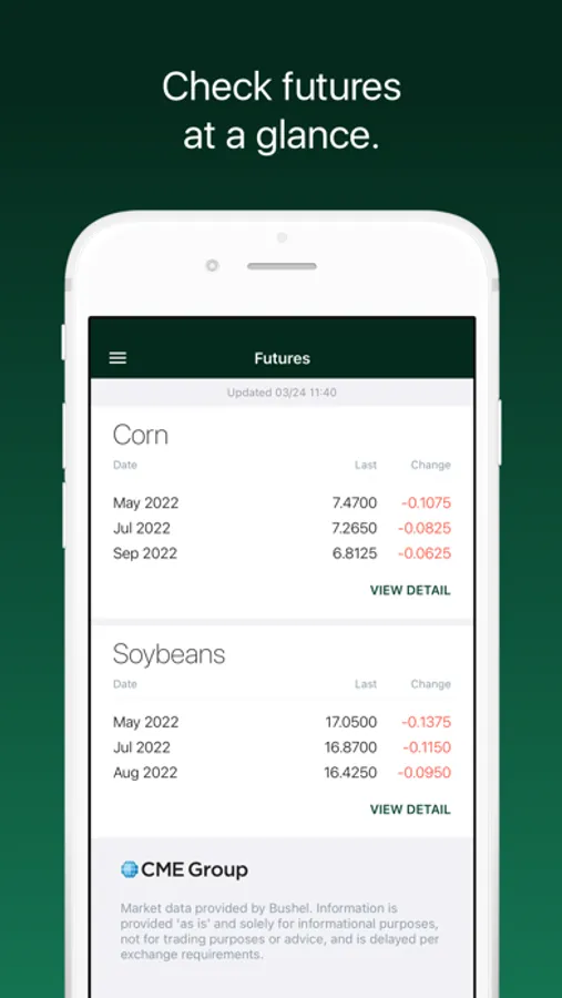 Futures: See Grains, Feed, Livestock, and Ethanol futures listed in order of your preference