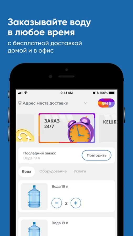 Заказать воду в приложении АкваИмперия просто и быстро. Все товары собраны по категориям. Добавляйте нужные позиции в корзину и оформляйте заказ в любое время суток.