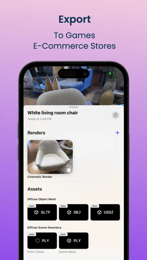 Luma is a new way to create incredible lifelike 3D with AI using your iPhone. Easily capture products, objects, landscapes and scenes wherever you are. From your captures create cinematic product videos, impossible camera moves for TikTok, or just relive the moment. No Lidar or fancy capture equipment necessary, all you need is an iPhone 11 or newer.