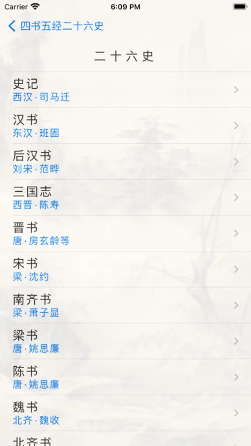 《二十六史》包括《史记》、《汉书》、《后汉书》、《三国志》、《晋书》、《宋书》、《南齐书》、《梁书》、《陈书》、《魏书》、《北齐书》、《周书》、《隋书》、《南史》、《北史》、《旧唐书》、《新唐书》、《旧五代史》、《新五代史》、《宋史》、《辽史》、《金史》、《元史》、《新元史》、《明史》、《清史稿》二十六种纪传体历史文献。