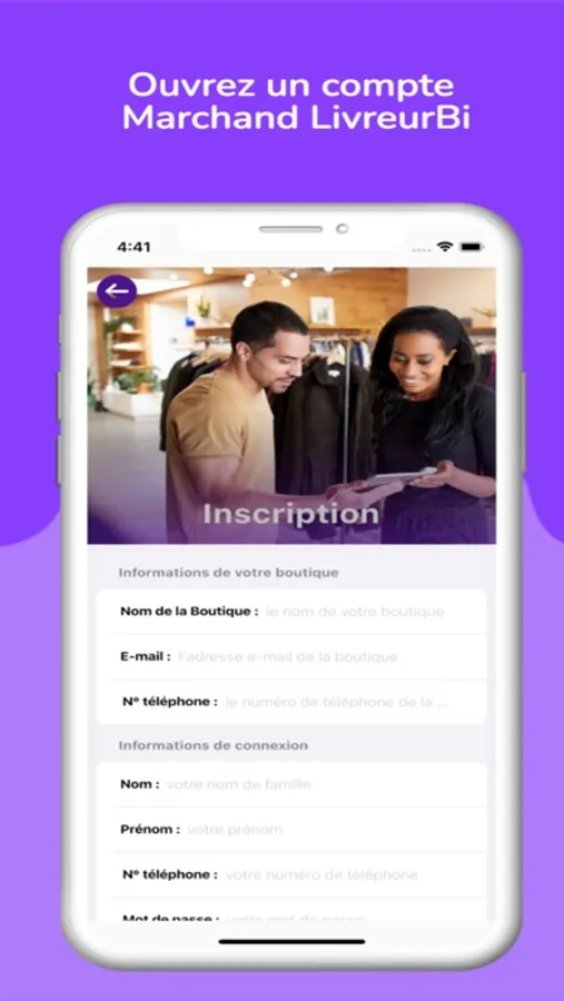 Marchand LivreuBi est l'application réservée aux commerçants de la plateforme LivreurBi. Grace à cette application, le marchand peut créer et gérer ses produits mais également trouver des livreurs fiables et proches pour commander une livraison.