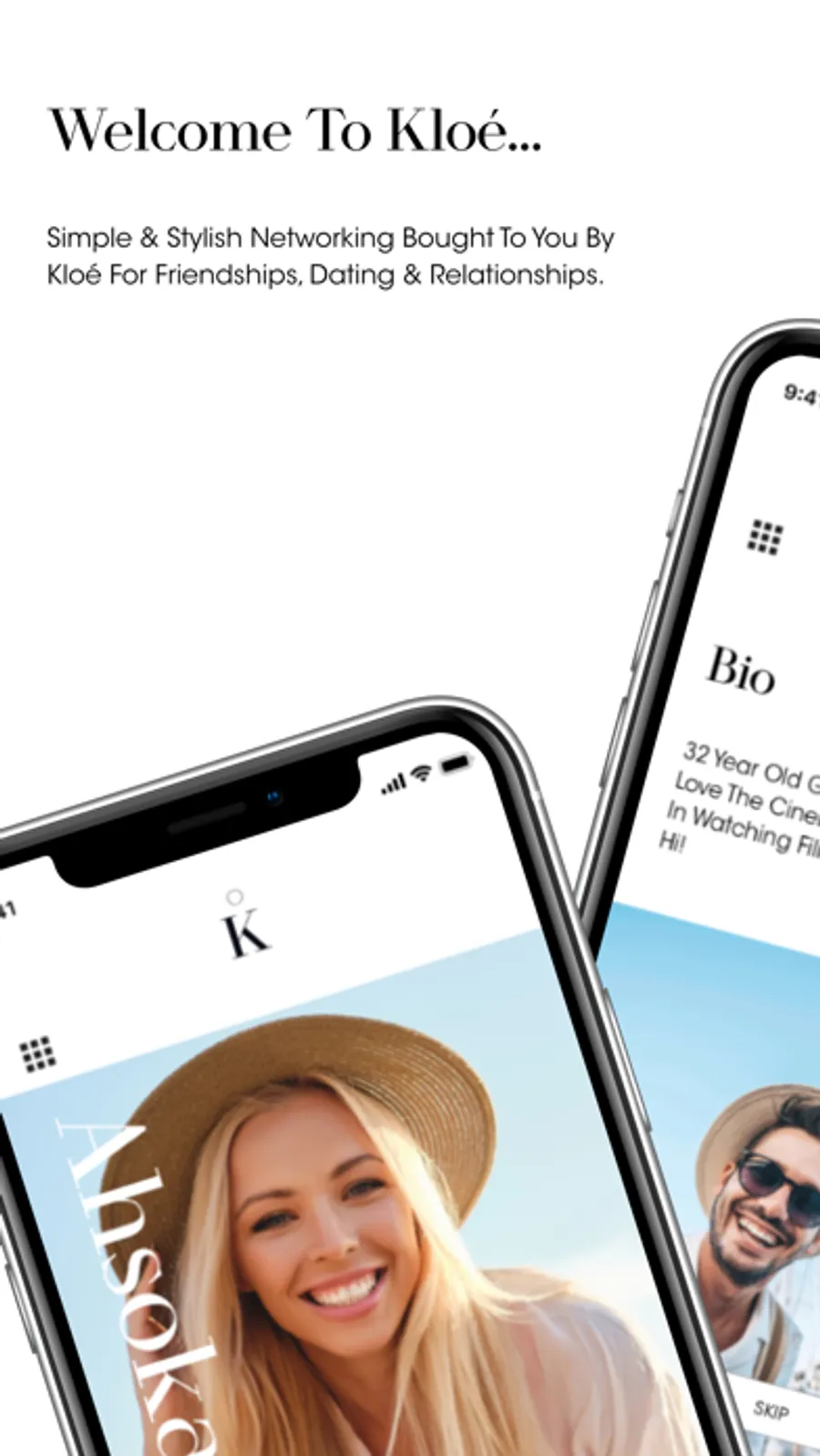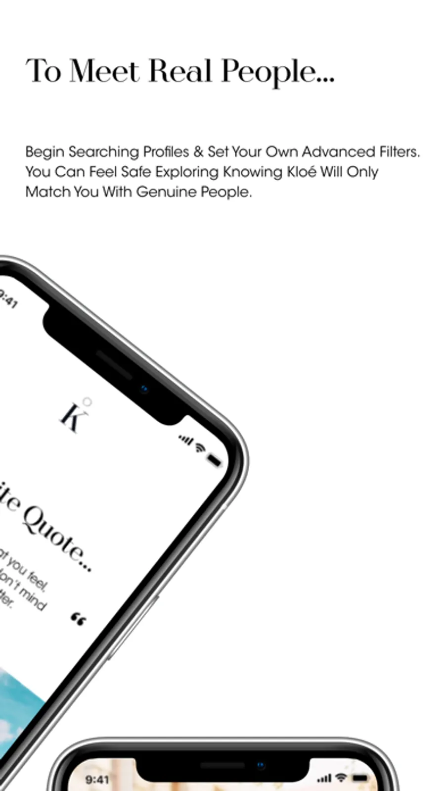 Style, Meet Kloé. A Friendship, Dating & Relationship Application Designed For Real People Like You. Let's Keep It Simple - No Gimmicks - No Roses - No Super Likes - No High Costs & No Ads. A True Community Of Users To Match, Talk & Network With In An Effortlessly Stylish Design.