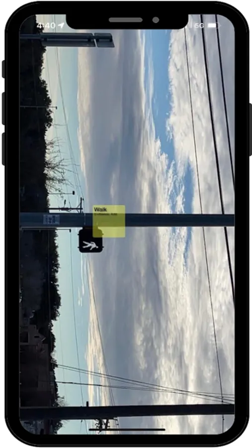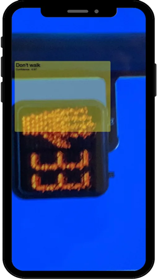 WalkAssist recognizes traffic related objects(crosswalk signal, crosswalk, and traffic signals) and alerts you through voice alerts.