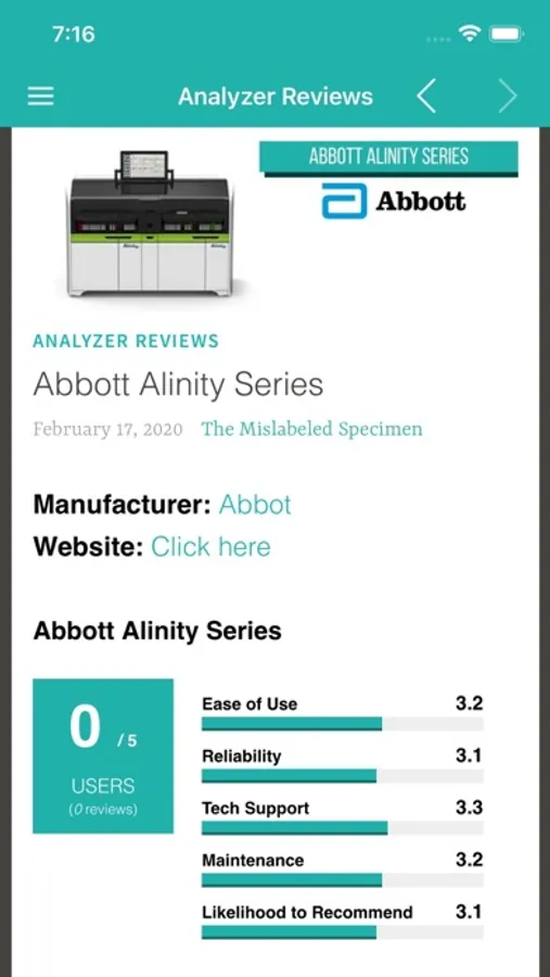 ANALYZER REVIEWS: Is it a yay or a nay? Get real tech reviews of laboratory analyzers shared by laboratory professionals with actual hands on experiences. This is a great resource for laboratory directors and managers who make vital purchase decisions in the lab.