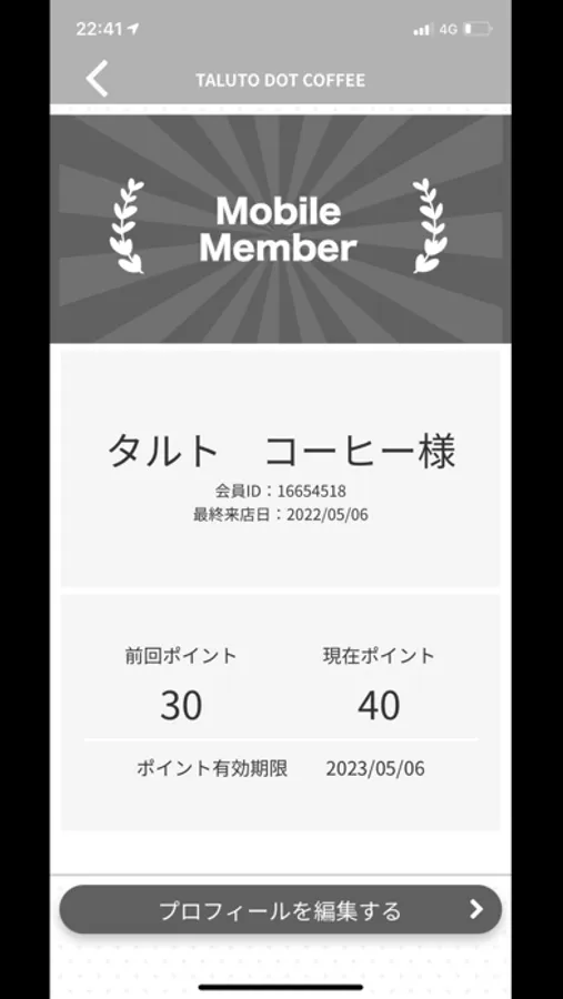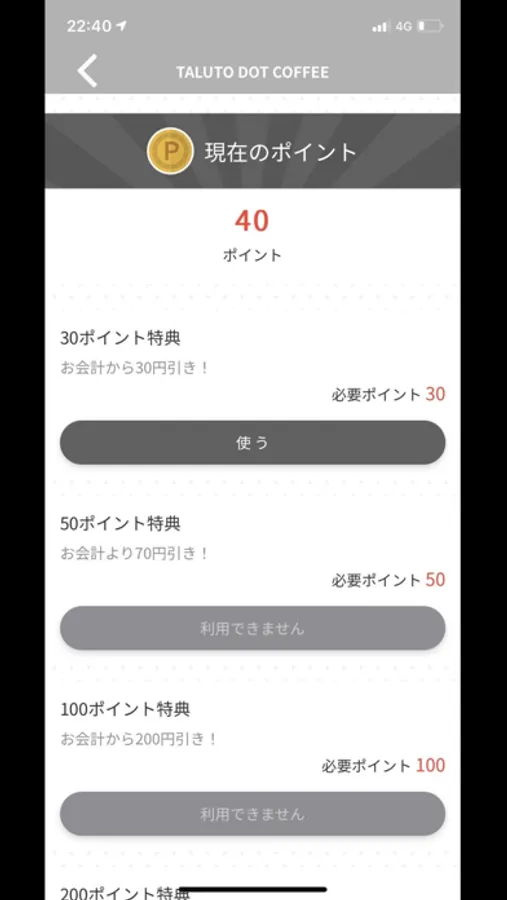 TALUTO DOT COFFEE にご来店いただく度に、来店ポイントが貯められます。