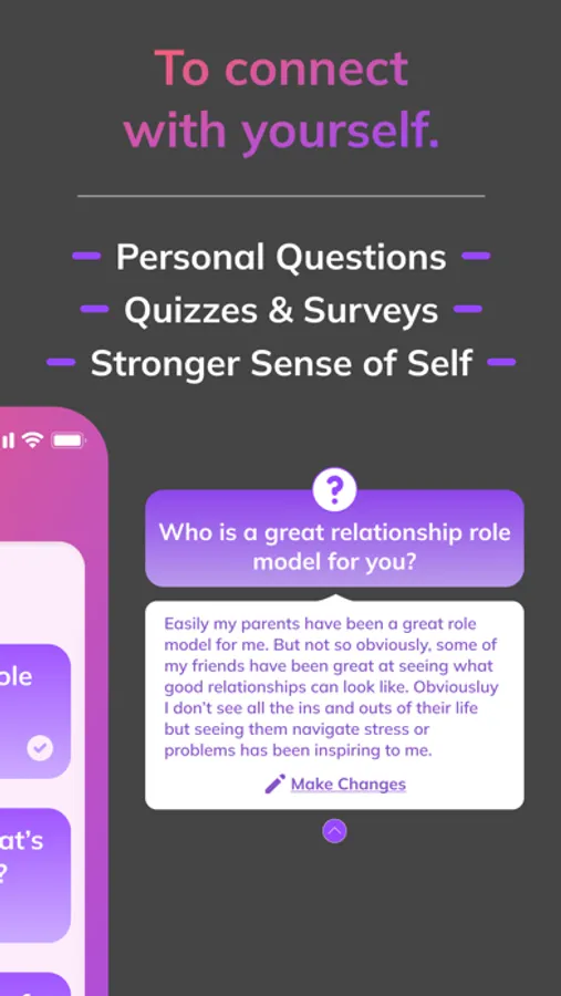 It also creates a space just for you, guiding you to explore yourself more deeply and asking the questions you may not know to ask yourself. The better you understand yourself, the more your relationships benefit.