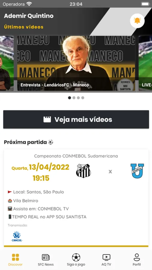 Baixe agora o APP "Quentinhas do Quintino" e fique atualizado em tempo real, de tudo que acontece no Santos Futebol Clube.