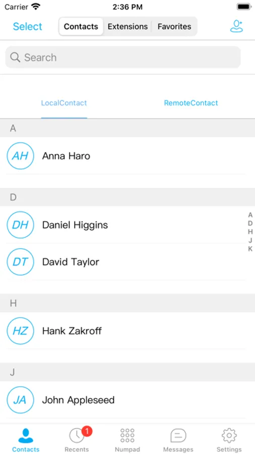 Usando lista de contatos existentes do usuário, Ntalk Plus facilita a gestão da comunicação fácil e eficaz com uma interface intuitiva.