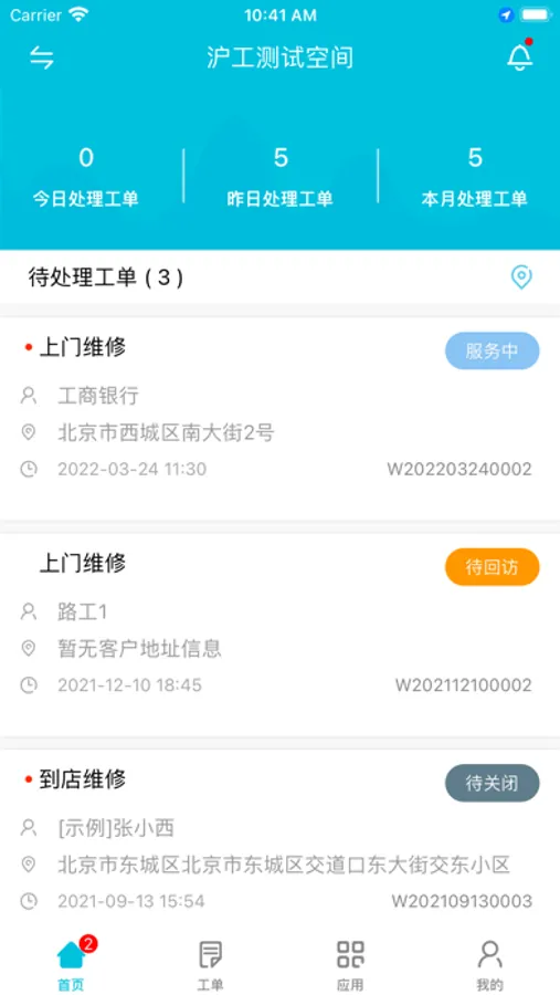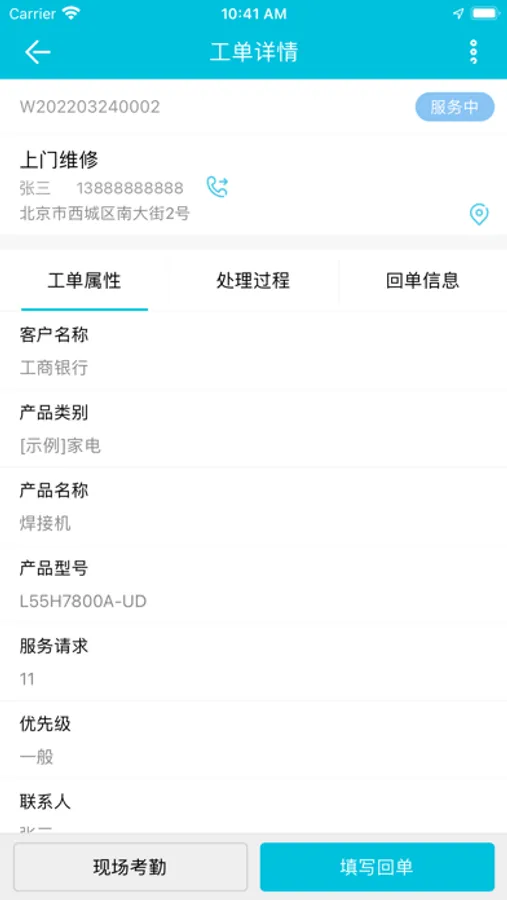 实时查看服务人员的当前位置、行程轨迹及工单的完成进度。