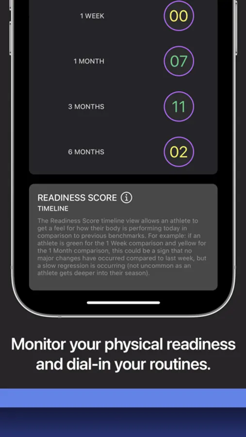 - A physical readiness metric comparative to 1-week, 1-month, 3-months, and 6-months.