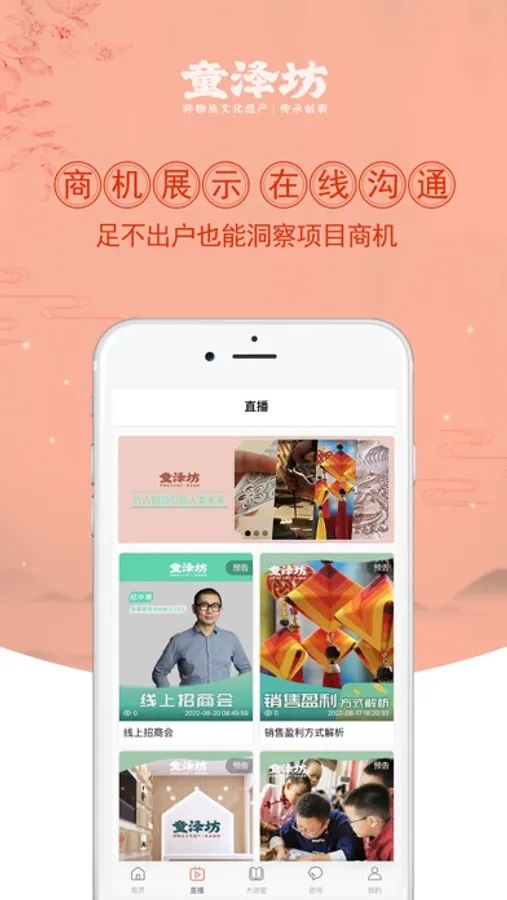 商机直播:通过视频方式,让创业者更有针对性地了解项目的整体解析、市场运营战略、项目优势、合作政策解读等内容。