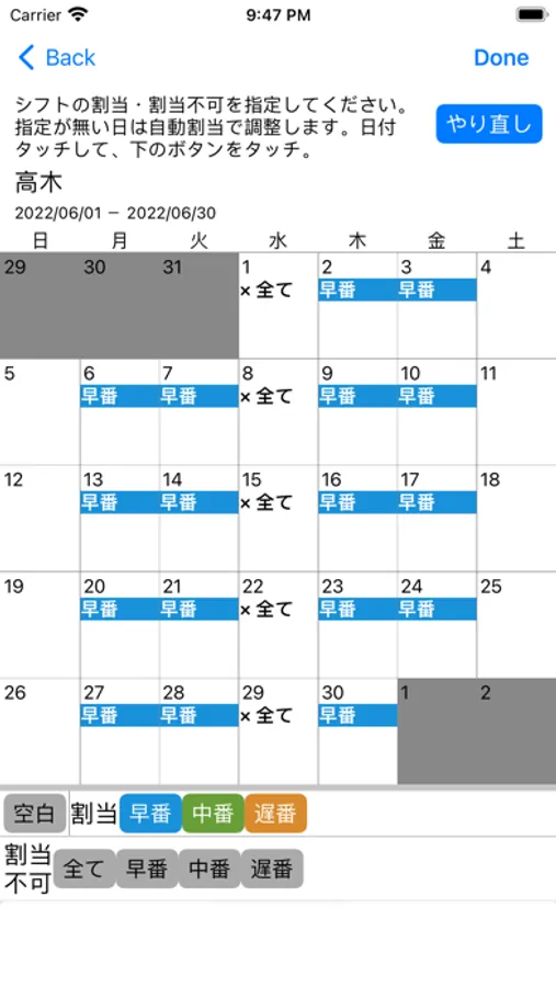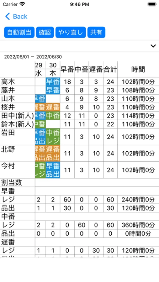 自動割当では割当ルールに合わせて、できるだけ公平なシフト表を作成します。