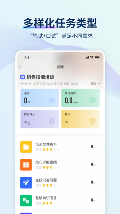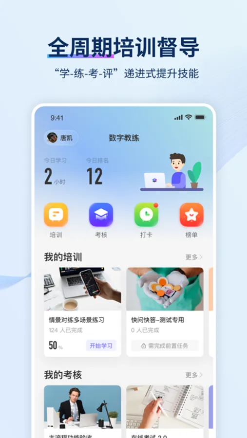 智能培训大师APP,是“TrainingMaster智能培训大师”平台精心打造的手机客户端,通过模拟真实的客户与员工对话场景,构建高仿真业务实训平台,帮助员工快速高效掌握话术规范与技巧。以场景化训练+通关考试+能力画像形成全周期培训督导,提升员工话术熟练度、灵活应对度、业务规范度等综合能力。