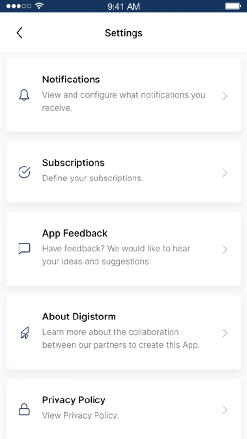 Settings allows you to manage the frequency and type of notifications that you receive from Masada.