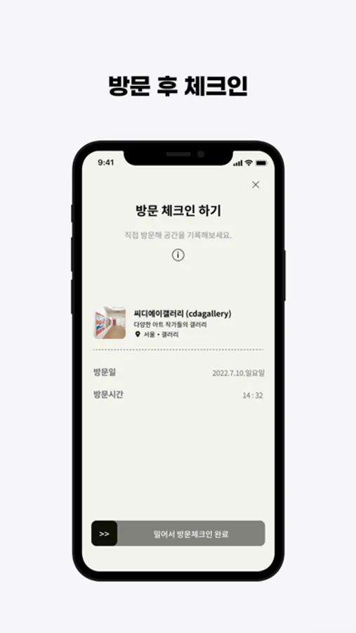 꼭 가고 싶은 공간이 있나요? “방문” 버튼을 눌러 체크인 가능한 공간을 확인해보세요. 당신의 인사이트 +1 상승을 부로컬리와 함께 축하해봐요! 부로컬리는 오프라인 공간에서 얻은 경험의 가치를 믿습니다 :)