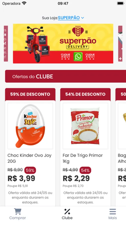 Com o aplicativo do Superpão Mais você tem acesso aos descontos exclusivos do Clube onde estiver. E ainda pode adicionar os seus itens preferidos a uma lista de compras ou criar uma lista de itens favoritos para acompanhar se entram em oferta.