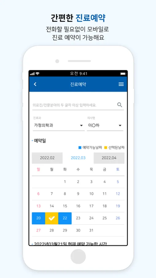 모바일앱에서 진료예약을 간편하게 할 수 있습니다.