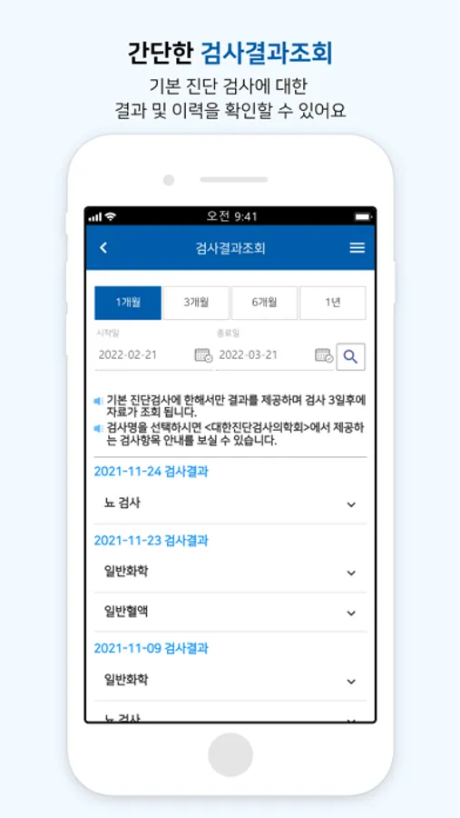 진행한 검사에 대해 그 결과 및 이력을 확인할 수 있습니다.