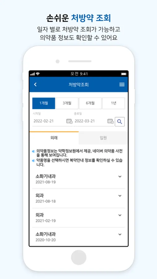 병원에서 진료 본 내역을 간편하게 확인할 수 있습니다